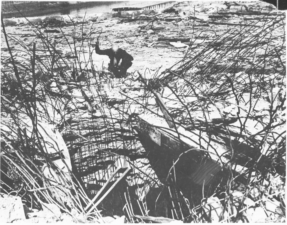 Bremen citizens repair water mains. Civilians in Bremen, Germany, prepare to drop a new section of water main in place.