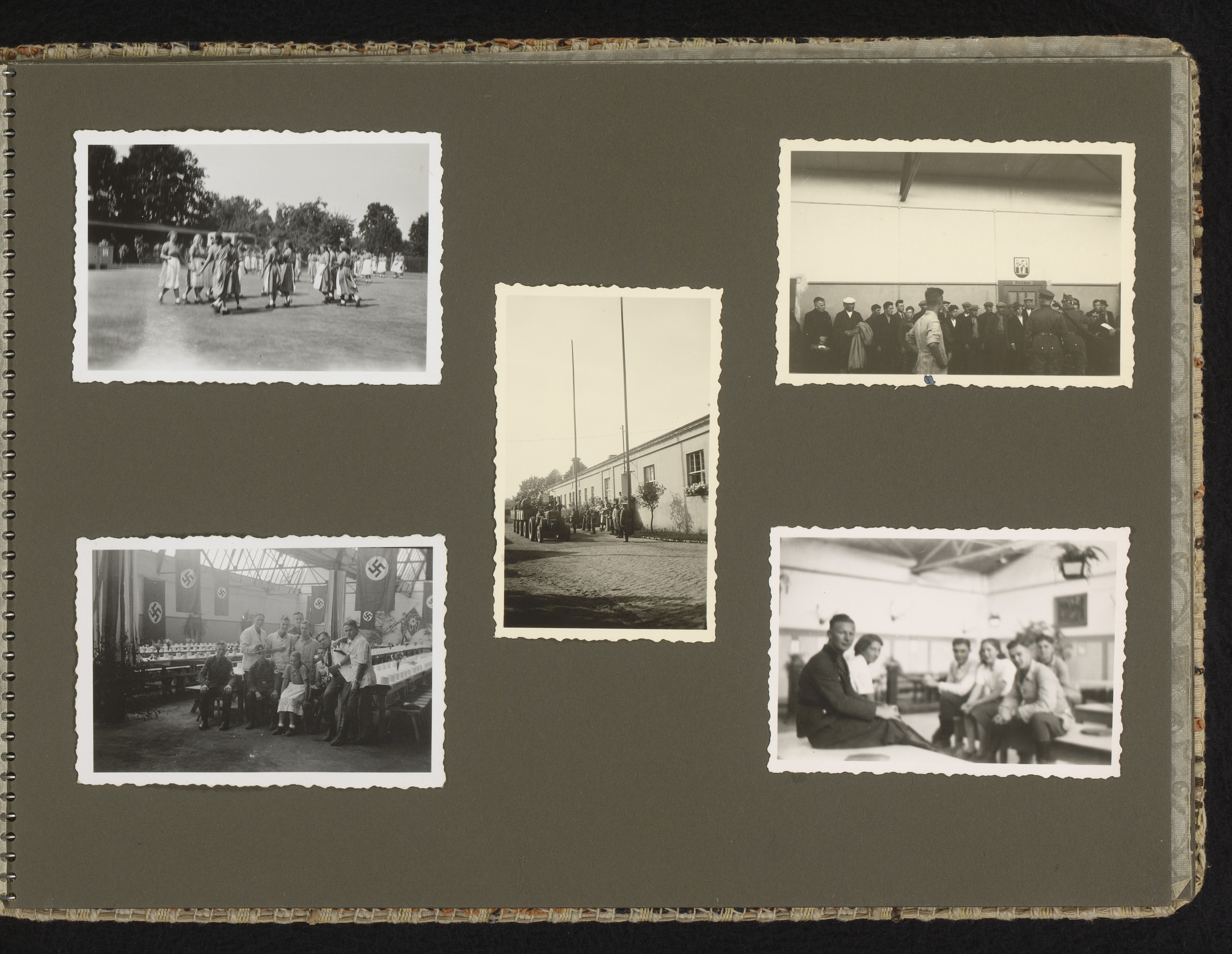 Albumblad met drie foto's tijdens de militaire opleiding in Bocklemünd (Keulen), 1939. Antennes en spoorlijn. Onderdeel van een Duits militair album Tweede Wereldoorlog 1939-1940.