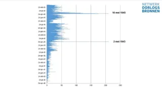Door de kaartjes niet alleen te scannen, maar de inhoud ook over te tikken, is het mogelijk door de gegevens op de kaartjes te ‘googelen’ en zo op een nieuwe manier naar Rotterdam in oorlogstijd te kijken. Zo zien we in de arrestatiedata pieken begin mei 1943 (april-mei staking) en vlak na de bevrijding (collaborateurs).