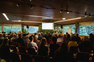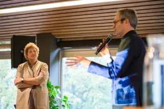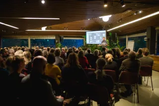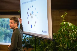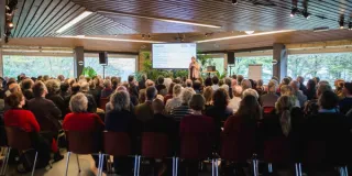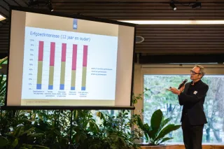 Op het scherm zien we een bouwput, met een aantal wandjes en zelfs een verdieping. "Vorig jaar legden we vooral de fundering. Dit jaar heeft het Netwerk Oorlogsbronnen de eerste muren opgetrokken", vertelt programmadirecteur Puck Huitsing aan de ruim 160 aanwezigen. De eerste contouren van ‘het huis’ tekenen zich af. Zowel in de groei van het netwerk van deelnemers (57 inmiddels!), als de realisatie van de collectie-portal met een nieuwe achterkant en inmiddels meer dan tien miljoen oorlogsbronnen. Programmamanager Edwin Klijn geeft een kijkje achter de schermen en gaat in op de projecten die afgelopen jaar zijn gestart, uitgevoerd en afgerond: “we hebben met onze voeten in de modder gestaan”.