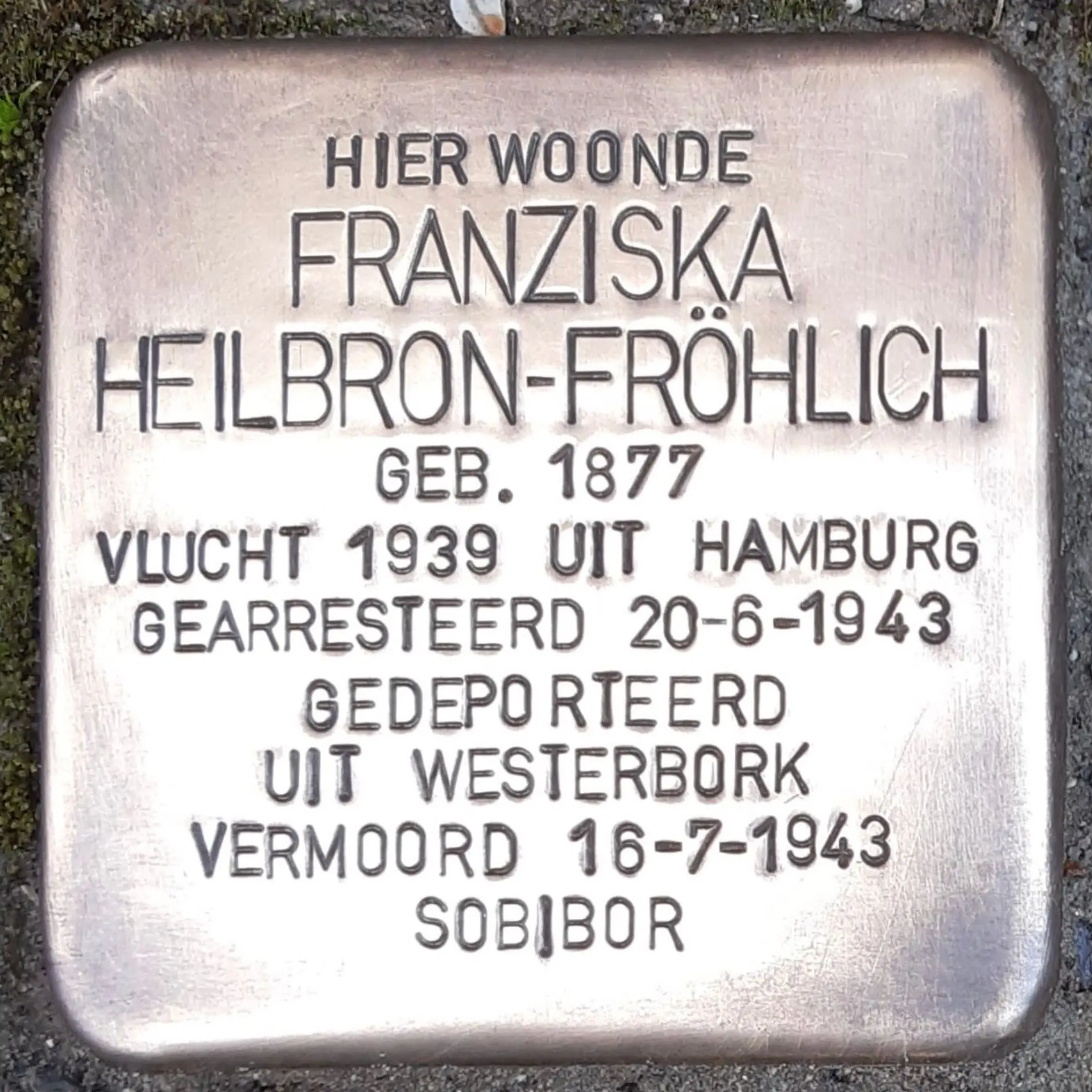 Mainz, 25 november 1877 - Sobibor, 16 juli 1943Het leven tijdens de oorlog van Fransziska Heilbron-Frohlich