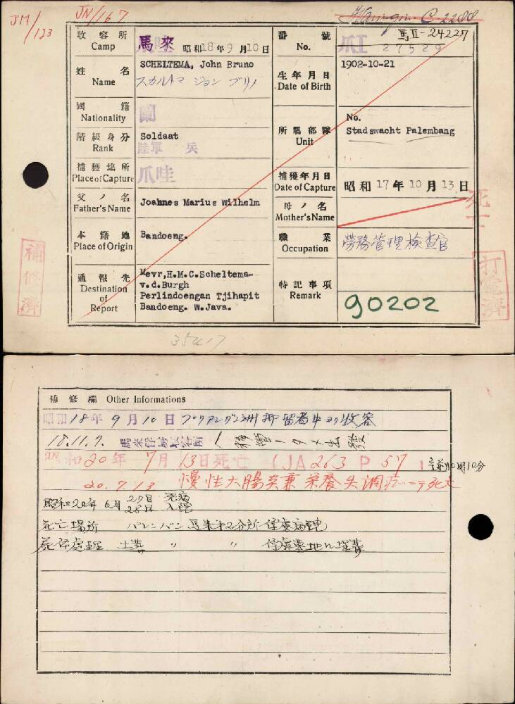 Het Japanse Informatiebureau voor krijgsgevangenen hield tijdens de Tweede Wereldoorlog informatie bij over krijgsgevangenen. De 46.979 interneringskaarten van KNIL militairen werden in 1955 overgedragen aan Nederland. Hierop is informatie te vinden over de militaire carrière, plaats en datum van krijgsgevangenneming en gevangenschap.
