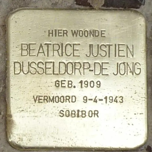 Amsterdam, 13 juli 1909 - Sobibor, 9 april 1943Het leven tijdens de oorlog van Beatrice Justien Dusseldorp-de Jong