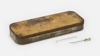 Een brede witte armband met geborduurd rood kruis en knopen, gedragen door medewerkers van het Rode Kruis in Utrecht. Op de armband een twee ronde stempels met het opschrift: "NED. ROODE KRUIS AFD. UTRECHT".