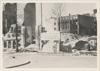 Blussen van de brand ter hoogte van de Teilingerstraat en Schoterbosstraat na het bombardement op Rotterdam van 14 mei 1940.