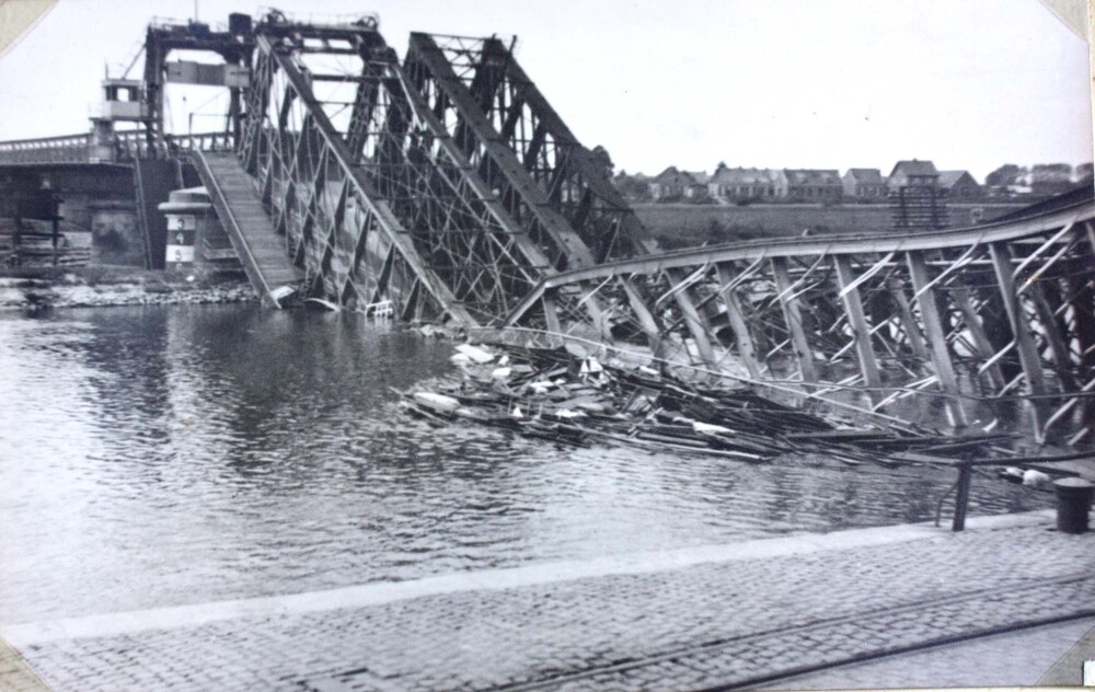 Foto van intrede van N.S.B. burgemeester Tesebeld, op 15 april 1944. Staande links de bode Stam, links van gemeentesecretaris de Bruin, links daarvan mevr. Tesebeld, rechts van burgemeester wethouder mr. G.J.H. Wagener. Daarachter kamerbewaarder/bode Martinus.