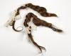 Paar vlechten met strikken, een blauw en een rood elastiekje.
