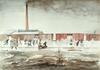 Gereedstaande goederenwagons met open deuren. Mensen stappen in, sjouwend met hun bezittingen. Links kijken enkele heren toe onder wie, herkenbaar, kampcommandant Gemmeker. Op de achtergrond het ketelhuis met zwaar rokende schoorsteen.