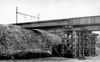 Gezicht op het vernielde zuidelijke viaduct van de tijdens de oorlog vernielde dubbele spoorbrug over het Wilhelminakanaal te Best.