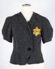 Archief 0652: Stichting Collectie Zwolle 1940 - 1945 > Beeldmateriaal > Caneel, G. > Opname van een vrouw met een Jodenster op haar jurk zit onderaan de trap van de Hoge Spoorbrug aan de Deventerstraatweg. De naam van de vrouw is niet bekend. De Nederlandse Joden waren vanaf 3 mei 1942 verplicht om de Jodenster te dragen. (Een ster kostte 4 cent, door de drager zelf te betalen, en per vier sterren ...