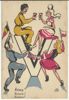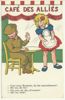 bevrijding - victorie !! - een Belgische meisje zit samen met haar bevrijder op het V-teken van Victorie en drinken een glas wijn " serie van 8 kaarten" " op de kaarten staat de paraaf van Lili" " op de kaarten een tekst in het Engels - Nederlands en Frans" " de kaarten zijn gedrukt in België"