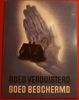 Affiche en brief. 1. Affiche met op een zwarte achtergrond bovenaan een de tekst in van bloed druipende, rode letters: 'Door den sluikhandel in vleesch', waaronder een afbeelding van silhouetten van menselijke figuren, die in vlees handelen. Daar weer onder een groot lichtgeel leeg bord en de tekst: '..blijft uw bord leeg'. 2. Daarbij de originele brief aan de winkeliers met de aansporing om dit affiche ...