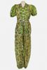 Broekjurk/pak van parachutezijde; twee kleuren groene camouflagestof, korte pofmouwen, knoopsluiting voor. Versierd met witte bies. Wm. Skinner and Sons Camouflage pattern. Parachutestof waarschijnlijk gebruikt door een US Airborne Division WO-2 Market Garden. Mogelijk is deze van 82nd Airborne Division. Origine nog niet vastgesteld.