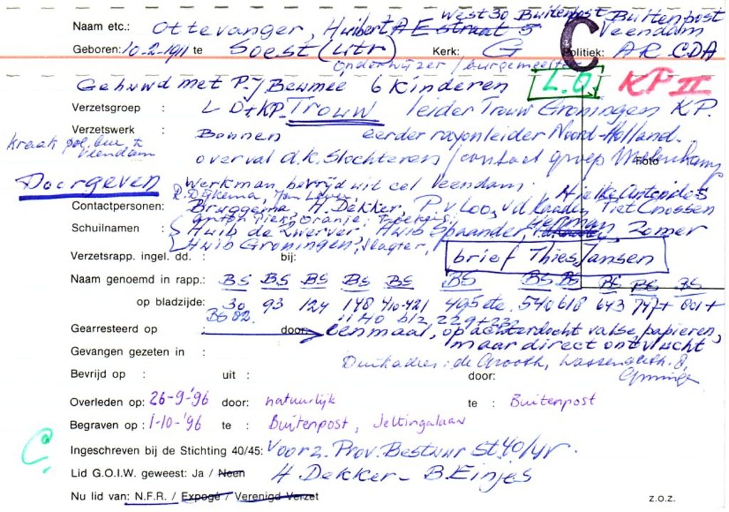 Systeemkaarten met namen van personen uit het verzet: Alidus Anne Jannes (Ad) Mulder