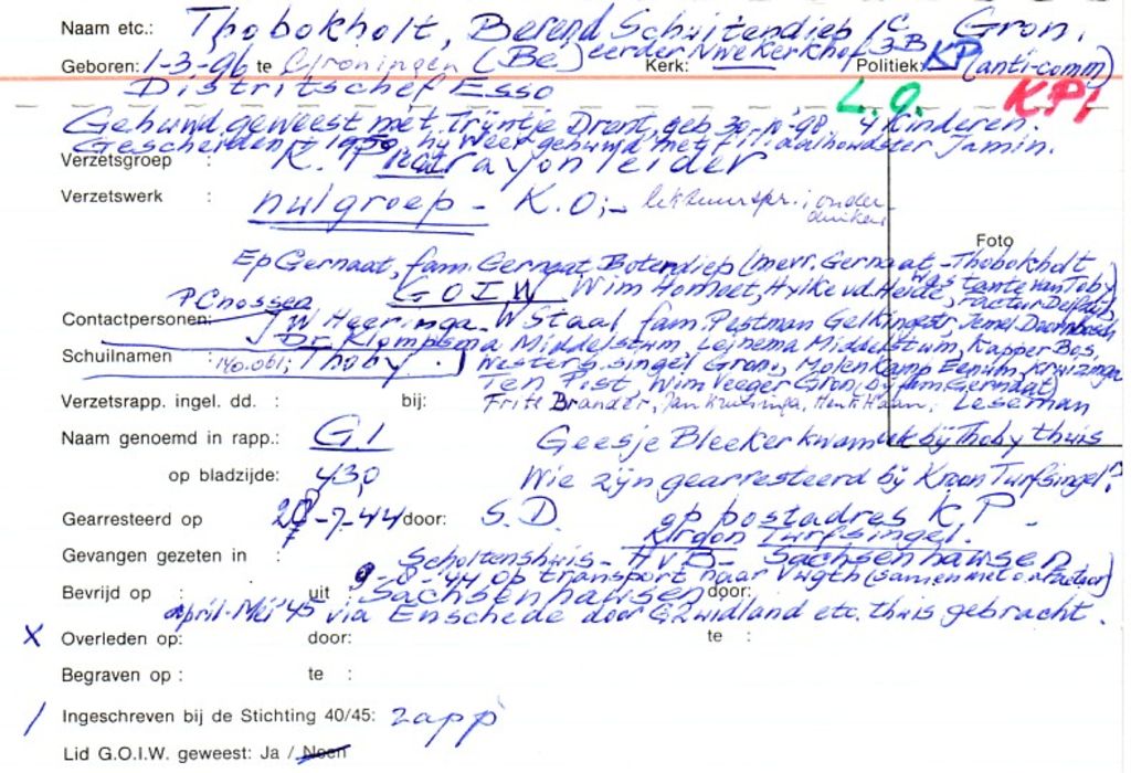 Systeemkaarten met namen van personen uit het verzet: Berend Hendriks