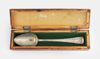 Kamplepel van Simon van Poelgeest met gravures, gemaakt in het Japanse interneringkamp in Thimahi (West-Java). Ingegraveerde tekst: data aankomst en vertrek uit dit kamp: 6 juni 1943 en 15 augustus 1945, evenals het gevangenenummer: 1077. De kamplepel is vervat in een houten doosje. Simon van Poelgeest, Amsterdam 28 augustus 1900 - Zandvoort 9 juli 1978.