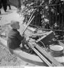 Op bruin papier geplakte afbeelding in zwart-wit van een rij verzinkte H-balken voor bovenleidingsportalen in de verzinkerij van de N.V. Plaatverwerkerij en Verzinkerij voorheen P. Bammens & Zoon aan de Straatweg 7 in Maarssen. De masten liggen op het terrein in de buitenlucht, ze zijn klaar voor transport. Boven de stapel hangt een takel. De H-balken zijn verzinkt om roesten tegen te gaan.