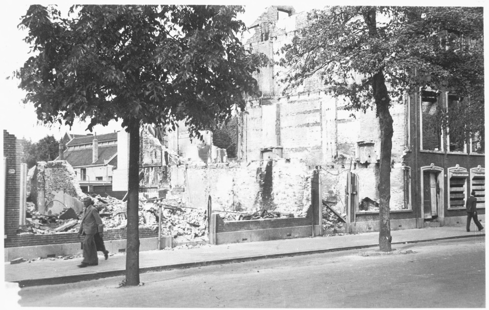 Station Dordrecht. Bezoeker schrijft: Personen: links:G van Rijnen midden:D.C.G.Laman rechts:J.Slijkhuis Achtergrond de locomotievenloods