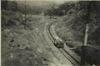 Nederlands Indië 7 December Divisie; spoorweg met een jeep op spoorwielen op de rails, militairen