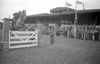 Springruiterwedstrijd van de Duitse Wehrmacht in een klein stadion, aanschouwd door een gemengd publiek. Nationaal-socialistische entourage.