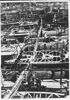 Afbeelding in zwart-wit van laadkisten van de Nederlandse Spoorwegen langs een stapel met gresbuizen. Tussen de gresbuizen en de laadkisten staan mannen. Op de voorgrond een voertuig dat de laadkisten kan voortrekken.