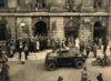 Afbeelding van het publiek bij het stadhuis (Stadhuisbrug 1) te Utrecht in afwachting van de terugkeer van burgemeester mr.dr. G.A.W. ter Pelkwijk; op de voorgrond de armoured car van de bevelvoerend officier van het 49th Reconnaissance Regiment (Polar Bears), lt.col. J.P.F. Miles D.S.O.