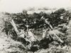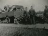 Foto Duitse mannen bij brokstukken, met links een wagen.
