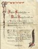 Programma Inter-Kerkelijke Dank-zangdienst, in de Willemskerk, Nassaulaan, Den Haag. 15 juni 1945 Programma gedecoreerd met rood-wit-blauw en oranje. religieuze liederen, afgesloten door het Wilhelmus.