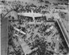 U.S. Army Air Forces exhibit opens in Paris. Looking down from the Eiffel Tower on the U.S. Army Air Forces Expedition, which opened in Paris to the general public August 1, 1945, daily drawing an eager crowd of approximately 75,000 people. At left, in foreground, is a B-17 Flying Fortress; at right, a B-24 Liberator. Forming part of the entrance to the exhibit, in the center background, is another ...