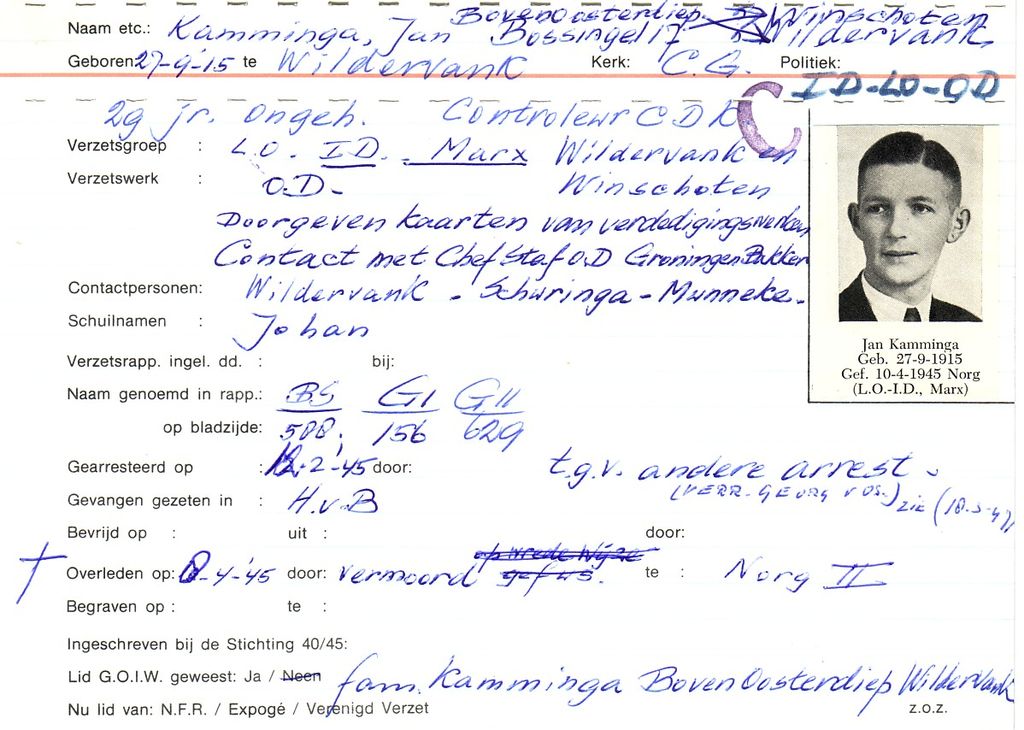 Systeemkaarten met namen van personen uit het verzet: Jan Kamminga