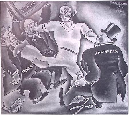 Staking getoont als vechtpartij op spotprent