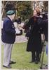 Afbeelding in zwart-wit met als voorstelling een blik op de verwoeste spoorbrug over de Maas bij Hedel, op 10 mei 1940. Te zien is hoe de brugdelen in het water gevallen zijn. Erbij een hijskraan op ponton voor het bergen van de resten. Op de achterzijde is met potlood locatie en datum geschreven. Daarbij een paars stempel van Foto-, Pers- en Filmbureau "Het Zuiden" en fotonummer: 63563.