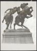 Foto in zwart-wit van ruiters op paarden. Een gedeelte van de achtergrond van de foto is witgeverfd, om de foto 'vrijstaand' te maken. De foto is afgedrukt in 'Nieuw Spoor' van november 1950, bij een artikel over activiteiten tijdens vakanties. Achterop de foto is met een blauwe pen aantekeningen over de foto geschreven en in zwarte pen 'Nieuw Spoor 11, 1950'.